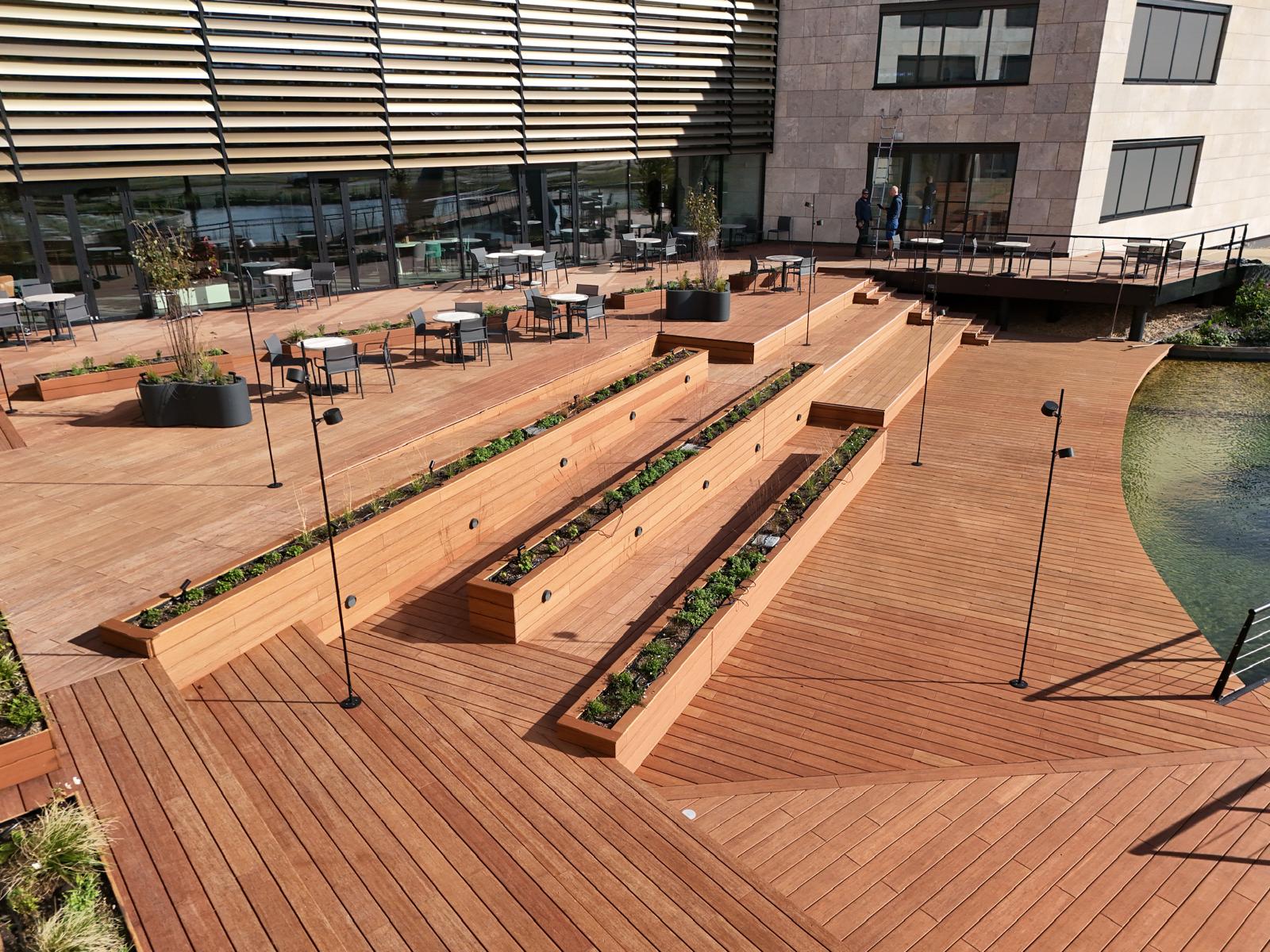 In het natuurpark Lelystad hebben wij voor Het Flevolandschap de Watertuin opnieuw ingericht en voorzien van eiken dekdelen van 40x190mm met 3 stroken safegrip. In de Watertuin (die zich bevindt direct naast het bezoekerscentrum) zie je de kleinere dieren van het natuurpark, zoals amfibieën, insecten, slakken en spinnen.